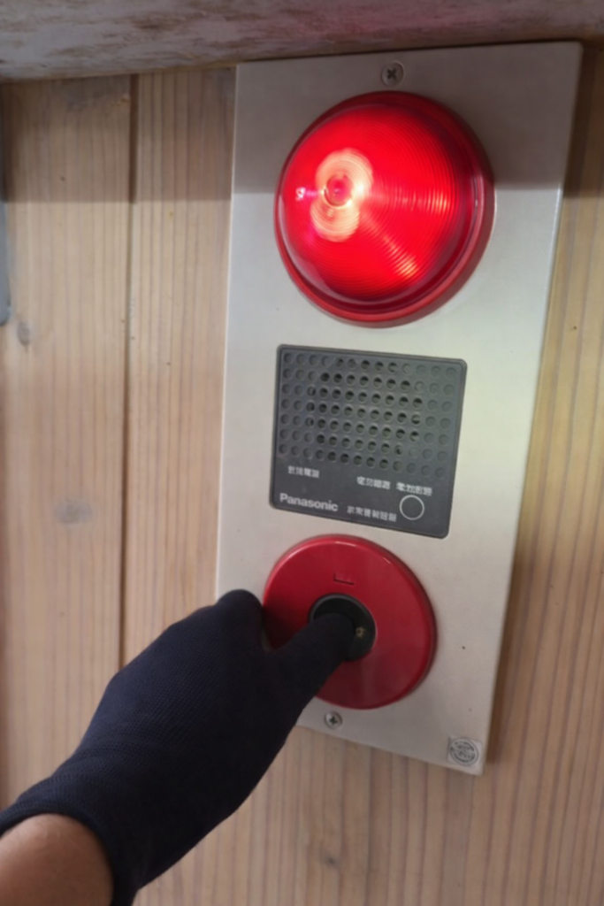 押釦を押すことによりベル・サイレンが鳴動しますので、正常に作動するか点検を行います。